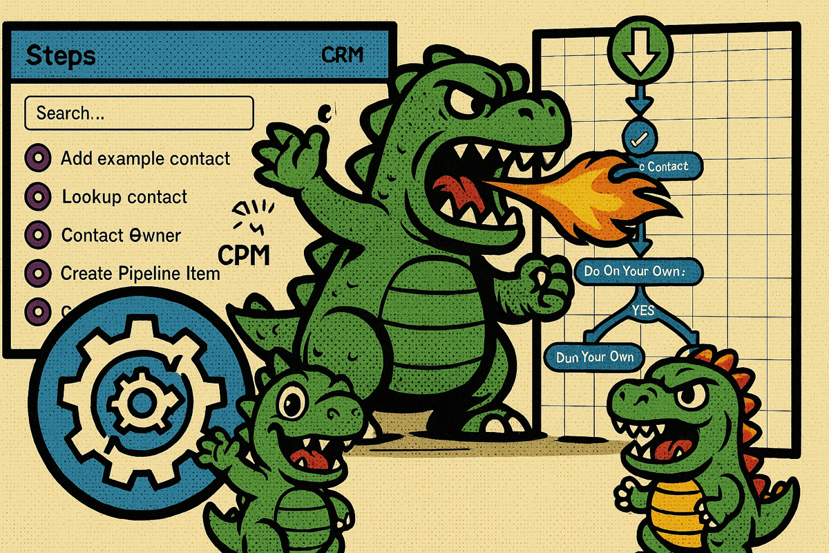 Triggers, drag and drop automations, and webhooks communicate data and events to third party systems.